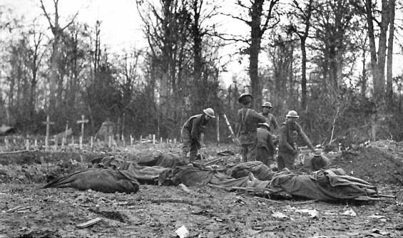 That morning we began burying our own dead, and we continued this work until two days later when we went to the rear for a short rest. Although we had buried most of our dead, we did not have time, on account of the number, to bury the German dead. They were buried later by other troops.