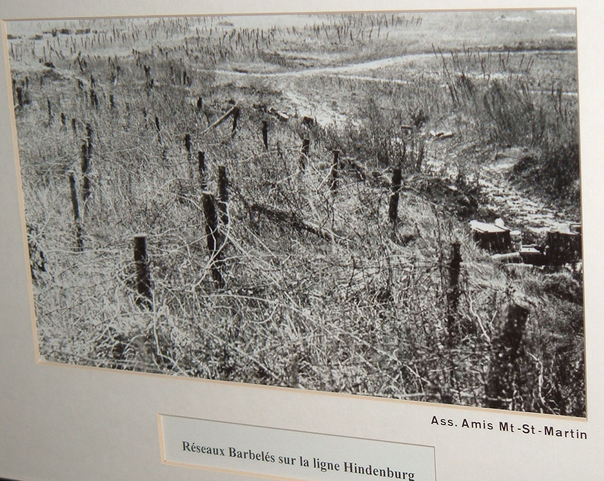 Passing through this belt of destroyed land, you came to the famous Hindenburg Line, a system of trenches, obstacles, water-way courses, canals, rivers, etc. so connected and defended as to prevent the penetration of an enemy. It is doubtful if a snake could have crawled through some parts of this line and not have been observed. The part of the line that we were to attack was like this: Running from St. Quentin in the direction of Cambrai is a canal which is 80 feet deep, 50 feet wide, and has 12 feet of water running in the bottom of the canal. Nearing a little town, Bellicourt, the canal is cut short by a tunnel, and the water proceeds through the tunnel in the direction of Cambrai. The tunnel is a marvelous engineering feat, built by Napoleon. It is made of stone and concrete, so constructed as to accommodate the flow of water and small barges, with a walk-way on either side of the water. The Germans had made several improvements in the tunnel.