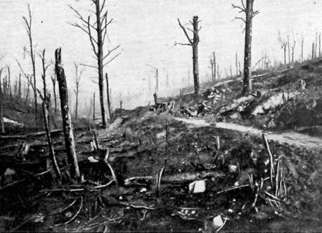 When our ten days of strain and pleasure were over, we turned our heads to the front. We traveled by motor lorries and by foot (mostly by foot), passing through the famous belt of destruction which the Germans made as they began their retreat to the Hindenburg Line. We passed through Albert and numbers of other towns which were completely leveled to the ground. Forests, farms, roads, villages, trees and buildings were as completely destroyed as though they had never existed. Great is the power of human destruction!