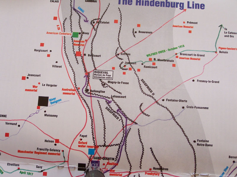 Hindenburg (Siegfried) Line and nearby towns. Canal mouth is at Riqueval.