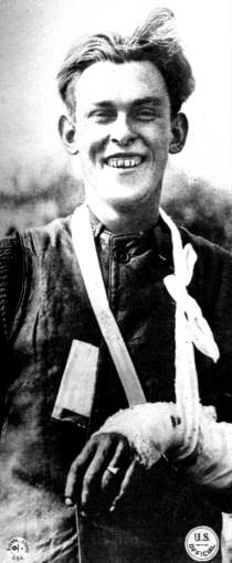 This had happened on October 18, 1918. Within thirty-six hours I was in the Third London General Hospital, London, England, where I remained in bed for three days and then carried my arm in a sling for a month. On December 28, 1918, I boarded the USS. "Louisville" at Southampton, and on January 7, 1919, I hailed the country that gave me birth and to whose land and shore I, as well as all others, owe a debt which we pay in full only when we make the supreme sacrifice.